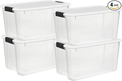 Sterilite 4 Pack Ultra Latching Box, Storage Bins with Lids